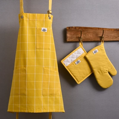 Design Imports Apron, Oven Mitt & Potholder Kitchen Set/3, Yarrow Yellow