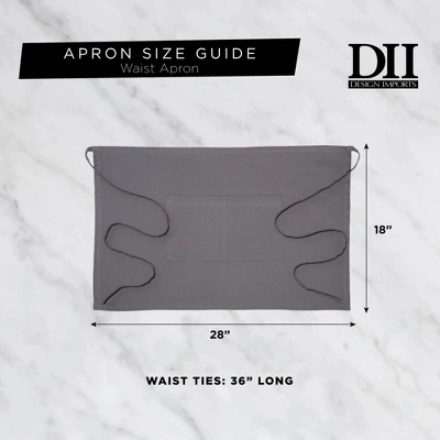 - Waist Chino Chef Aprons measures 18 inches by 28 inches, with a 36 inch long strap to wrap around your waist.