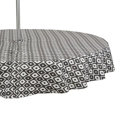 - INDOOR & OUTDOOR USE: Enjoy a quality tablecloth that is stain resistant and waterproof measuring 60 round featuring a zipper with a 2.5-inch center hole for easy install around umbrellas, made of 100% polyester, seats 4-6 people