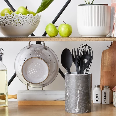 - Heavy duty ceramic utensil holder is dishwasher safe. Keep all of your most used utensils contained and in reach with this holder.