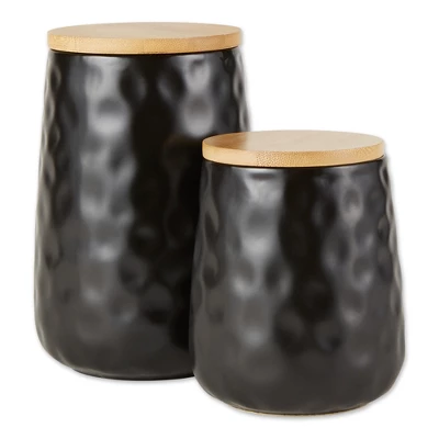 - Set includes 2 canisters with bamboo lids. Small measures 3.6×3.6×5.2 inches and holds 3.25 cups inches. Large measures 4.3×4.3×7.1 inches and holds 5.75 cups.