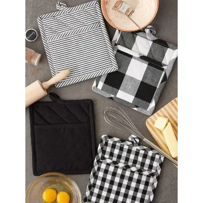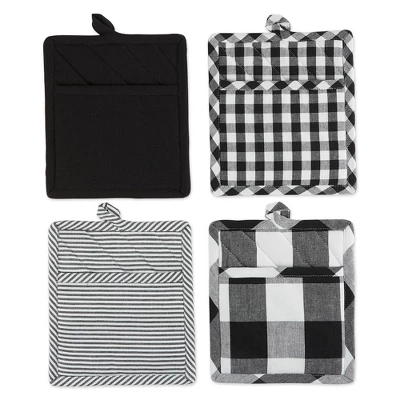 - Each set includes 4 potholders in 4 designs measuring 9 inches by 8 inches. Heat resistant to protect your hands while handling hot pots, pans, dishes, casseroles, and more.