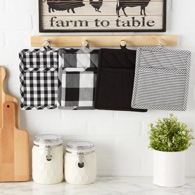 A kitchen accessory with style! DII has created these potholders in a timeless design with fashion and functional in mind. Create a joyful atmosphere with this kitchen tool, no more old-traditional kitchen hot pads for you. These potholders are perfect for cooking, baking, serving, or dinner parties, give as a gift to friends and family. Potholder Set includes 4 potholders, each measures 9 inches by 8 inches, a great tool in the kitchen to protect you from the heat while cooking and baking or use as a trivet to protect your table and countertops from unsightly burns.