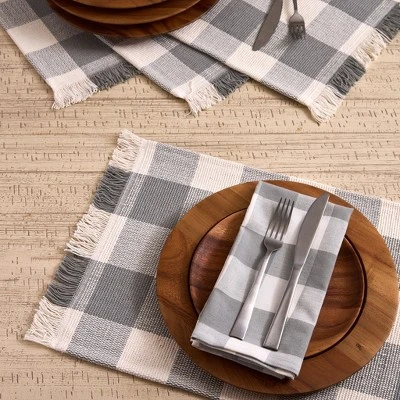 - Classic check pattern adds timeless charm to everyday meals and seasonal gatherings while the fringe detailing brings a casual, rustic touch to your table setting. The versatile styling pairs easily with solid or patterned dinnerware and linens.