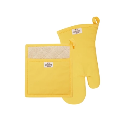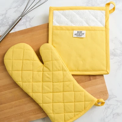 Design Imports Chino Oven Mitt & Potholder Kitchen Set/2, Yarrow Yellow