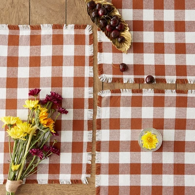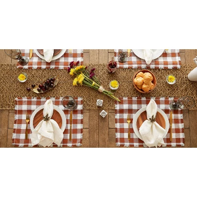 Design Imports Cinnamon Heavyweight Check Fringed Placemat Set/6