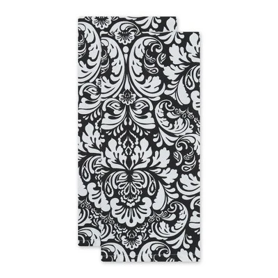 Design Imports Damask Print Dishtowel Set 2 Piece, 18X28″, Black