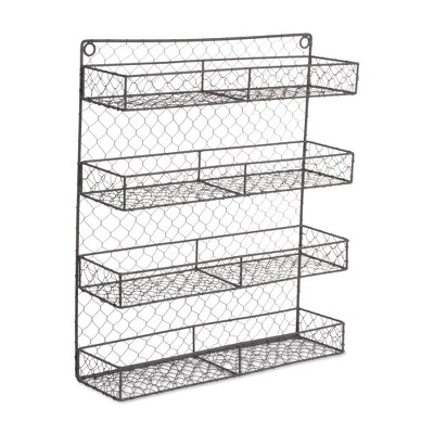 Crafted of antiqued finish chicken coop metal wire with a sturdy frame and vintage look, add country appeal to your kitchen with these charming spice racks. This 2 tier wire rack is perfect for wall mounting, counter, cabinet, or pantry storage. Suitable for all your small organizing needs in the kitchen, from spices to oils, shot glasses, foods and jars. Or for your beauty needs, hang in the salon or bathroom to display or store your favorite nail polish, lotion, or essential oils!