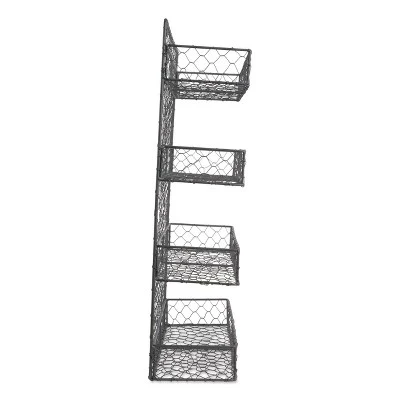 - Measures 1.7×4.75×20 inches with a 4.75 inch shelf depth and 5.25 inches between shelves. Made of antique and distressed looking chicken wire. Our spice jars are designed to fit these shelves.
