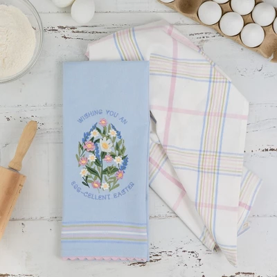 The Design Imports Egg-cellent Easter Dishtowel Set of 2 adds a festive touch to your kitchen with playful egg-themed designs. Perfect for both function and decoration, these absorbent towels are great for drying dishes and wiping surfaces. Machine washable for easy care.