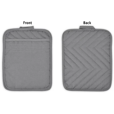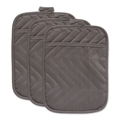 DII 100% Cotton, machine washable, quilted pocket potholder, includes 3 potholders, each measures 7 inches by 9 inches. These wonderfully made potholders are heat resistance, which allows you to remove dishes from the oven and hot pots from the stove. The chino cotton and quilting allows for easy flexibility in this potholder. DII potholder sets are available in many colors to coordinate with your kitchen. This is a must have potholder set for any and every kitchen.