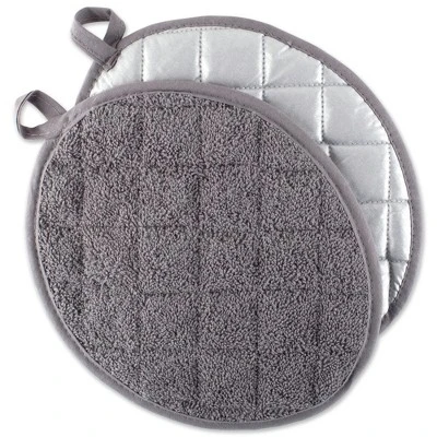 The DII Gray Terry Oval Potholder Set of 2 provides heat protection and a secure grip with its durable, heat-resistant cotton and soft terry texture. The versatile oval shape makes handling cookware easy. Machine washable for convenient care and everyday use.