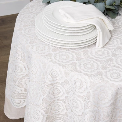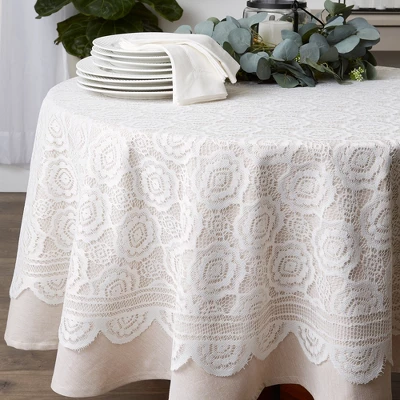 - Measures 63 inches in diameter, appropriate for a round table that can seat 4-6 people.