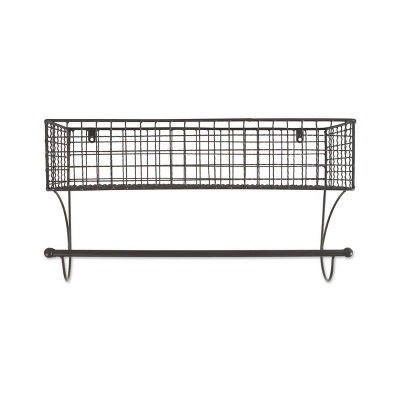 Crafted of antiqued finish chicken coop metal wire for a vintage look and a sturdy frame, this wall mount shelf will be a great addition to your interior. Stylishly house little handy items for easy access. The towel bar would also come in handy when dinner preparation is fully on. With their rustic appeal, this shelf would make a charming housewarming gift.