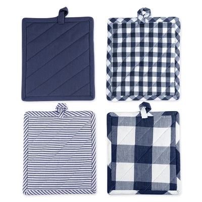 - Each set includes 4 potholders in 4 designs measuring 9 inches by 8 inches. Heat resistant to protect your hands while handling hot pots, pans, dishes, casseroles, and more.