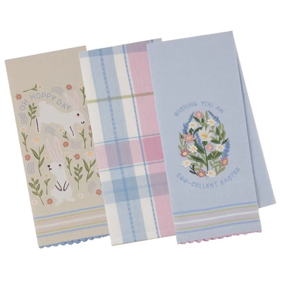The Design Imports Oh Hoppy Day Dishtowel Set of 3 adds festive charm to your kitchen with cheerful Easter-themed designs. Perfect for both function and decoration, these absorbent towels are great for drying dishes and wiping surfaces. Machine washable for easy care.