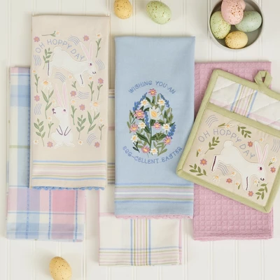 - Festive dishtowels feature cheerful Easter-themed designs, perfect for adding seasonal charm to your kitchen