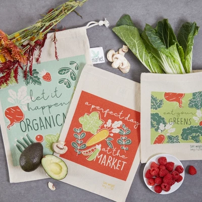 The DII Organic Greens Market Produce Bags Set of 3 offers an eco-friendly solution for grocery shopping and produce storage. Made from durable, breathable cotton, these reusable bags help reduce plastic waste while keeping fruits and vegetables fresh. Machine washable for easy care.