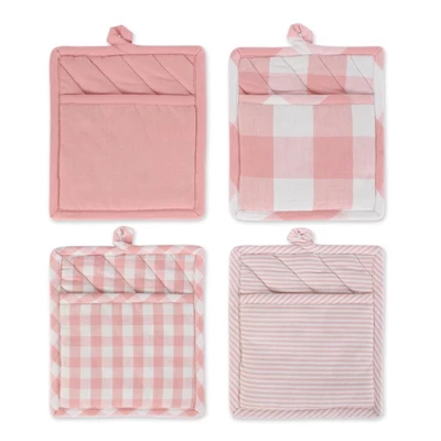 - Each set includes 4 potholders in 4 designs measuring 9 inches by 8 inches. Heat resistant to protect your hands while handling hot pots, pans, dishes, casseroles, and more.