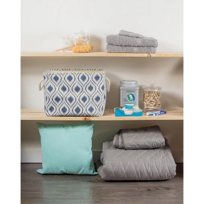 Polyester storage bins are a fun and creative way to organize and store toys, clothes, blankets, towels, books, knick knacks and more. Tired of clutter in the kids room, living room, or laundry room? These storage containers could be the perfect solution to organize the clutter while enhancing your home’s decor. These trendy bins have become very popular due to their simple yet chic look and dependability. Sturdily constructed, these storage bins are up to the task of being carried to-and-fro, used to transport groceries, laundry, or household goods these bins will handle it. The material and construction offers a long lasting bin that you can use over and over again.