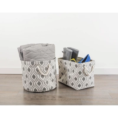 Polyester storage bins are a fun and creative way to organize and store toys, clothes, blankets, towels, books, knick knacks and more. Tired of clutter in the kids room, living room, or laundry room? These storage containers could be the perfect solution to organize the clutter while enhancing your home’s decor. These trendy bins have become very popular due to their simple yet chic look and dependability. Sturdily constructed, these storage bins are up to the task of being carried to-and-fro, used to transport groceries, laundry, or household goods these bins will handle it. The material and construction offers a long lasting bin that you can use over and over again.
