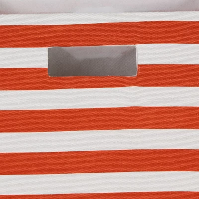 - Wrapped in polyester fabric, storage bins have a cardboard core on sides and bottom to give shape and add structure while still allowing bins to fold flat when not in use.