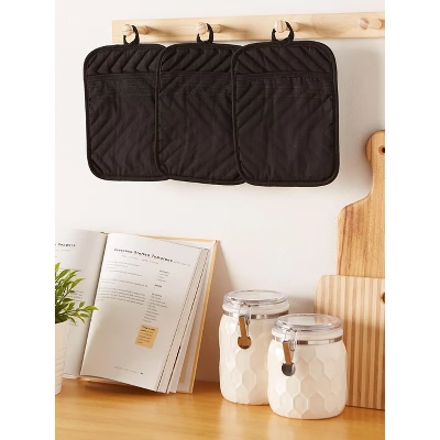 - Set includes 3 potholders measures 7 inches by 9 inches, each with a hanging loop allows for easy storage. Perfect for daily use and coordinate well with your home and kitchen.