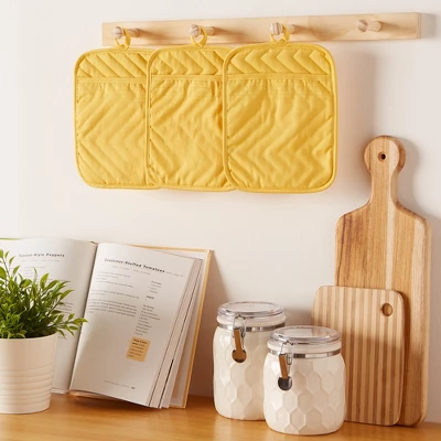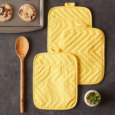 - Set includes 3 potholders measures 7 inches by 9 inches, each with a hanging loop allows for easy storage. Perfect for daily use and coordinate well with your home and kitchen.