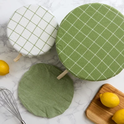 Design Imports Reusable Cotton Dish Covers Set/3, Clover