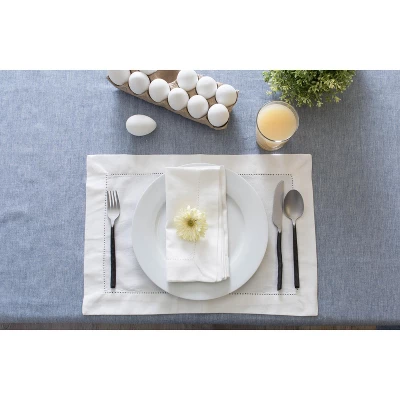 DII’s Blue Solid Chambray Tablecloth , measures 60×104 inches, appropriate for a table that can seat 8-10 people. Crafted from high quality fabric, machine wash in cold water separately, gentle cycle, line dry to avoid any shrinkage. Low iron if needed. Let your dinnerware stand out with our colorfast wrinkle resistant tablecloths that are sure to make a statement. Your table can be dressed up or down to create the perfect place setting. A classic staple for any kind of entertaining, our tablecloths are perfect for holidays, dinners, parties, banquets, catering, showers, events and more. Adds a beautiful touch to your tablescape.