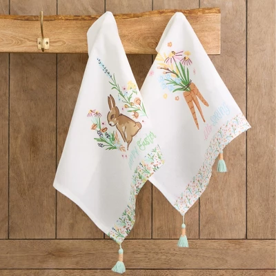 The Spring Bunny Dishtowel Set of 2 adds a festive seasonal touch with its charming bunny and floral designs. Made from absorbent cotton, these towels are perfect for drying dishes and wiping spills while brightening your kitchen. Machine washable for easy care and long-lasting use.