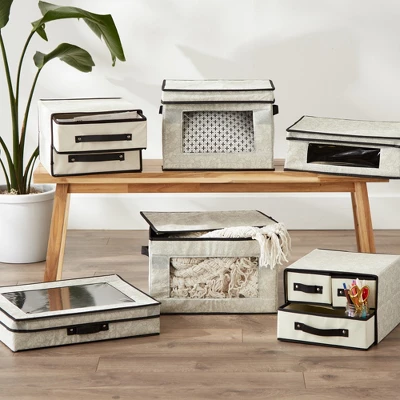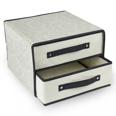 - A GREAT SIZE FOR YOUR NEEDS: Non woven closet soft storage with drawers in damask print is 12x12x8″ with two different drawer options