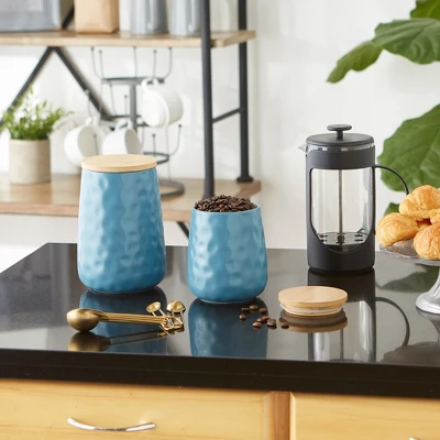 Design Imports Storm Blue Matte Dimple Texture Ceramic Canister Set/2