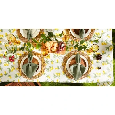 The DII Summer Lemons Vinyl Tablecloth 70″ Round adds a cheerful touch to any table with its vibrant lemon print. Made from durable, waterproof vinyl with a flannel backing, it protects surfaces while being easy to clean. Perfect for indoor and outdoor dining. Wipe clean for effortless care.