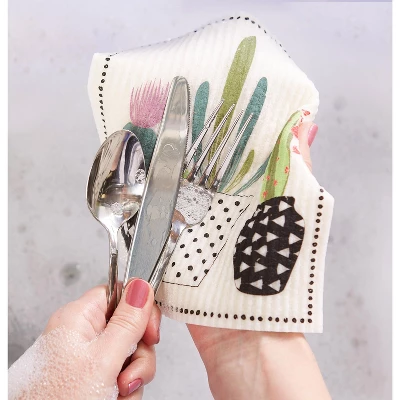 Design Imports Swedish Dishcloth Set/3, Reusable & Absorbent, Succulents