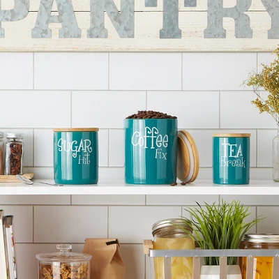 - SIMPLE, SOPHISTICATED, FUNCTIONAL: Set includes 3 canisters; Coffee Canister measures 4.5 x 4.5 x 5.5″ and holds 4.5 cups; Sugar Canister measures 4 x 4 x 4.5″ and holds 3 cups; Tea Canister measures: 3 x 3 x 4″ and holds 1.25 cups