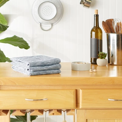 Design Imports Teal Green/Off-White Tonal Recycled Cotton Waffle Dishtowel Set/3
