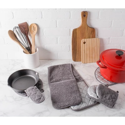 The DII Terry Double Oven Mitt provides extended heat protection with its durable, heat-resistant cotton and soft terry lining. Its one-piece design ensures a secure grip while handling hot dishes and cookware. Perfect for everyday use and machine washable for easy care.