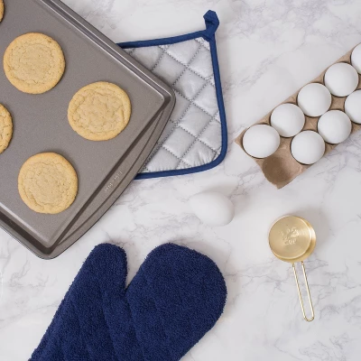 Design Imports Terry Solid Oven Mitt Set 2 Piece Nautical Blue 7X13″