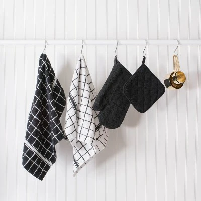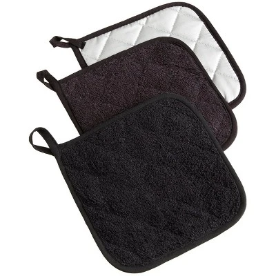 Design Imports Terry Solid Potholder Set 3 Piece Black 7X7″