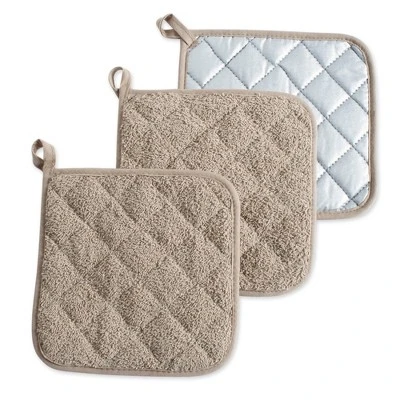 Design Imports Terry Solid Potholder Set 3 Piece Stone 7X7″