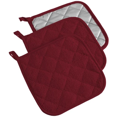 Design Imports Terry Solid Potholder Set 3 Piece Wine 7X7″