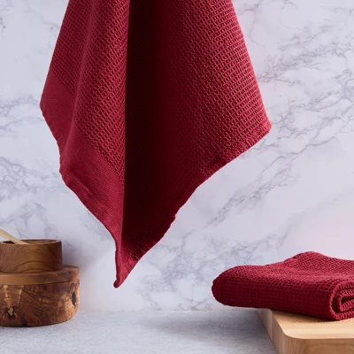 Design Imports Washed Waffle Dishtowel Set/2, Dove Gray Checker