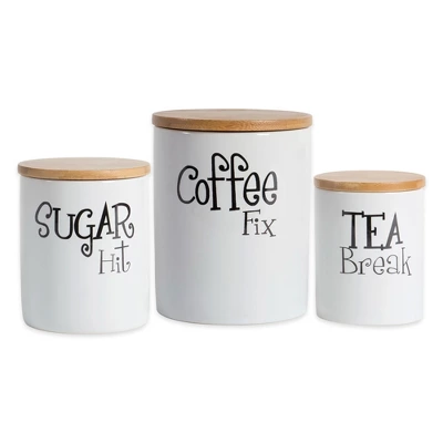 - Set includes 3 canisters. Coffee Canister: 4.5 inches by 4.5 inches by 5.5 inches and holds 4.5 cups; Sugar Canister: 4 inches by 4 inches by 4.5 inches and holds 3 cups; Tea Canister: 3 inches by 3 inches by 4 inches amd holds 1.25 cups.