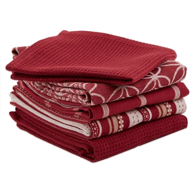 - Made in India, each set includes 4 dishtowels measuring 18×28-inches and 1 dishcloth measuring 13×13-inches in assorted patterns.