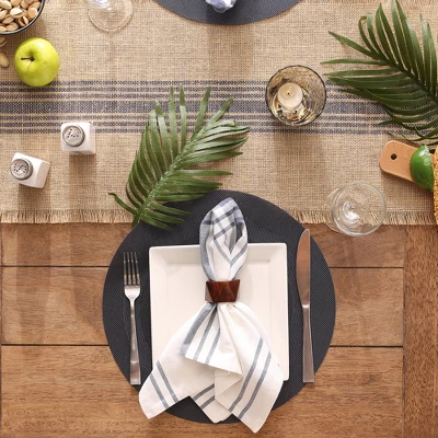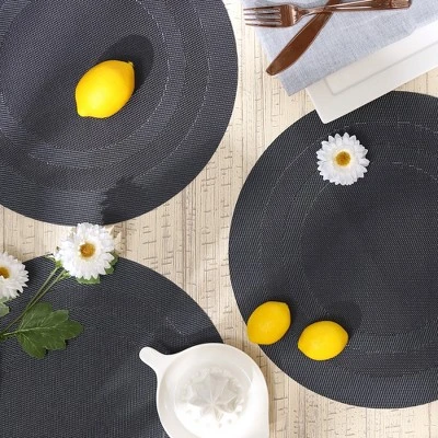 DII Doubleframe Indoor/Outdoor PVC Round Placemat/6, Stonewash Blue, 13.75″ Diameter