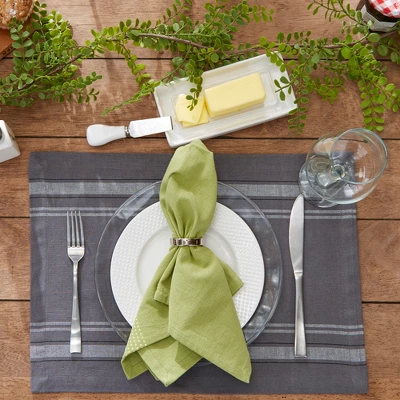 These 100-percent cotton placemat comes in a variety of colors. These placemats are perfect for picnics, parties, showers, dinners, everyday use and more. These French Stripe placemats have a 1 inch folded hem and mitered corners. These placemats are machine washable for easy clean up and use. Coordinate with the matching French Stripe tablecloth, napkins and table runner for a complete look.