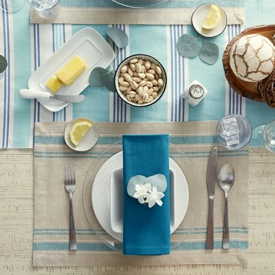 These 100-percent cotton placemat comes in a variety of colors. These placemats are perfect for picnics, parties, showers, dinners, everyday use and more. These French Stripe placemats have a 1 inch folded hem and mitered corners. These placemats are machine washable for easy clean up and use. Coordinate with the matching French Stripe tablecloth, napkins and table runner for a complete look.