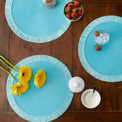 DII Fringe Placemat Set 6 Piece, Aqua, 14.75″ Dia