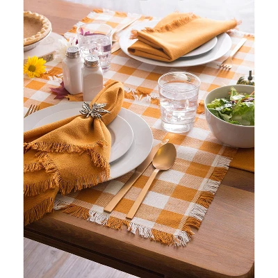 - Fringed edges have a casual look that works with any style of dishes. Coordinate with matching napkins and table runners to create the perfect place setting.